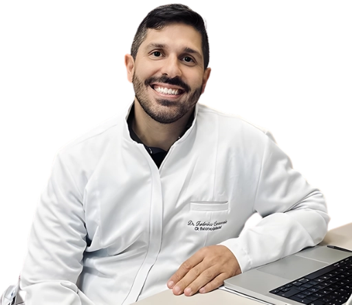 Dr. Frederico Carnevale é Cirurgião Bucomaxilofacial graduado e com residência pela Universidade Federal do Rio de Janeiro (UFRJ). É especialista em Cirurgia e Traumatologia Bucomaxilofacial pelo Colégio Brasileiro de Cirurgia e Traumatologia Bucomaxilofacial (CBCTBMF) e pelo Conselho Federal de Odontologia (CFO), além de mestre em Cirurgia Bucomaxilofacial. Possui fellowship em Cirurgia Ortognática pelo S.O.S – Dr. Simomas Gryvausks (Lituânia) e participou do IBRA Advanced Course “Orthognathic Surgery” em Basileia, Suíça. Realizou observerships internacionais em Cirurgia do Sono e Tratamento da Apneia Obstrutiva do Sono na Universidade de Stanford (EUA), sob orientação do Dr. Capasso, e em Cirurgia Ortognática Minimamente Invasiva em Bruges, Bélgica. É Full Member da IBRA (International Bone Research Association), sediada na Suíça. Complementa sua formação com pós-graduações em Cirurgia Cosmética da Face (Faces Team), Cirurgia Ortognática Minimamente Invasiva (ITC), Implantodontia e Artroscopia de ATM (APCD – Dr. Sato e Tralli). Atua como professor do Curso de Cirurgia Cosmética da Face com ênfase em Cervicoplastia pela Faceneckacademy e é palestrante em Cirurgia Ortognática em diversos congressos nacionais, sendo reconhecido por sua formação de excelência e atuação de referência em cirurgia ortognática e estética facial.